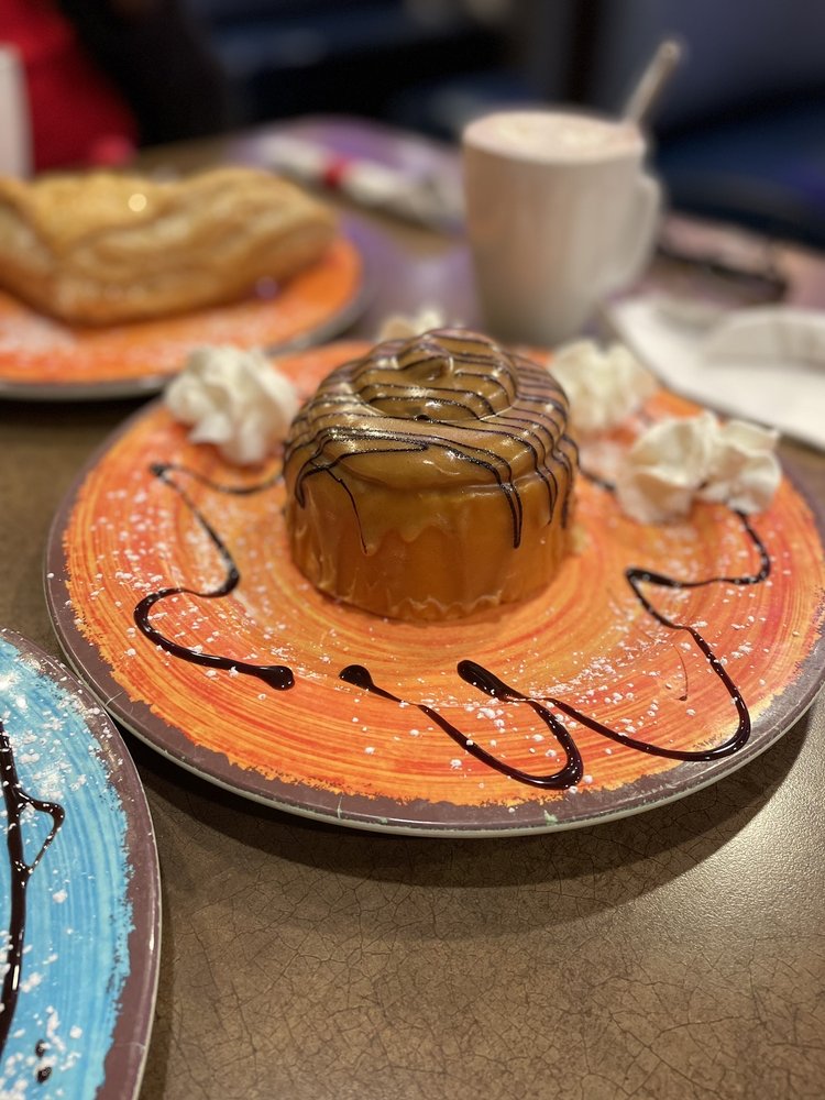 Double espresso, caramel sauce, vanilla syrup and steamed milk.