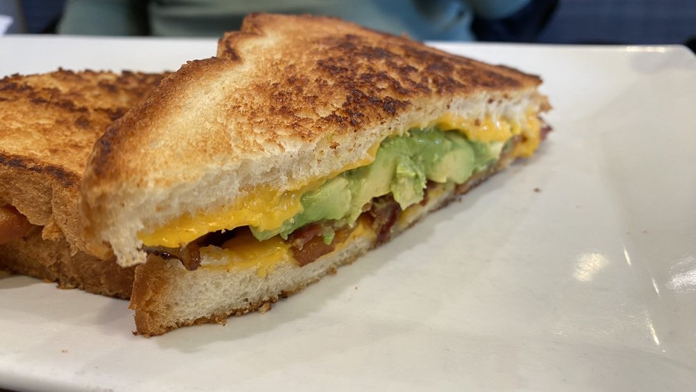 Taylor ham, scrambled egg, avocado & Monterey jack cheese on a toasted bagel, served with home fries.